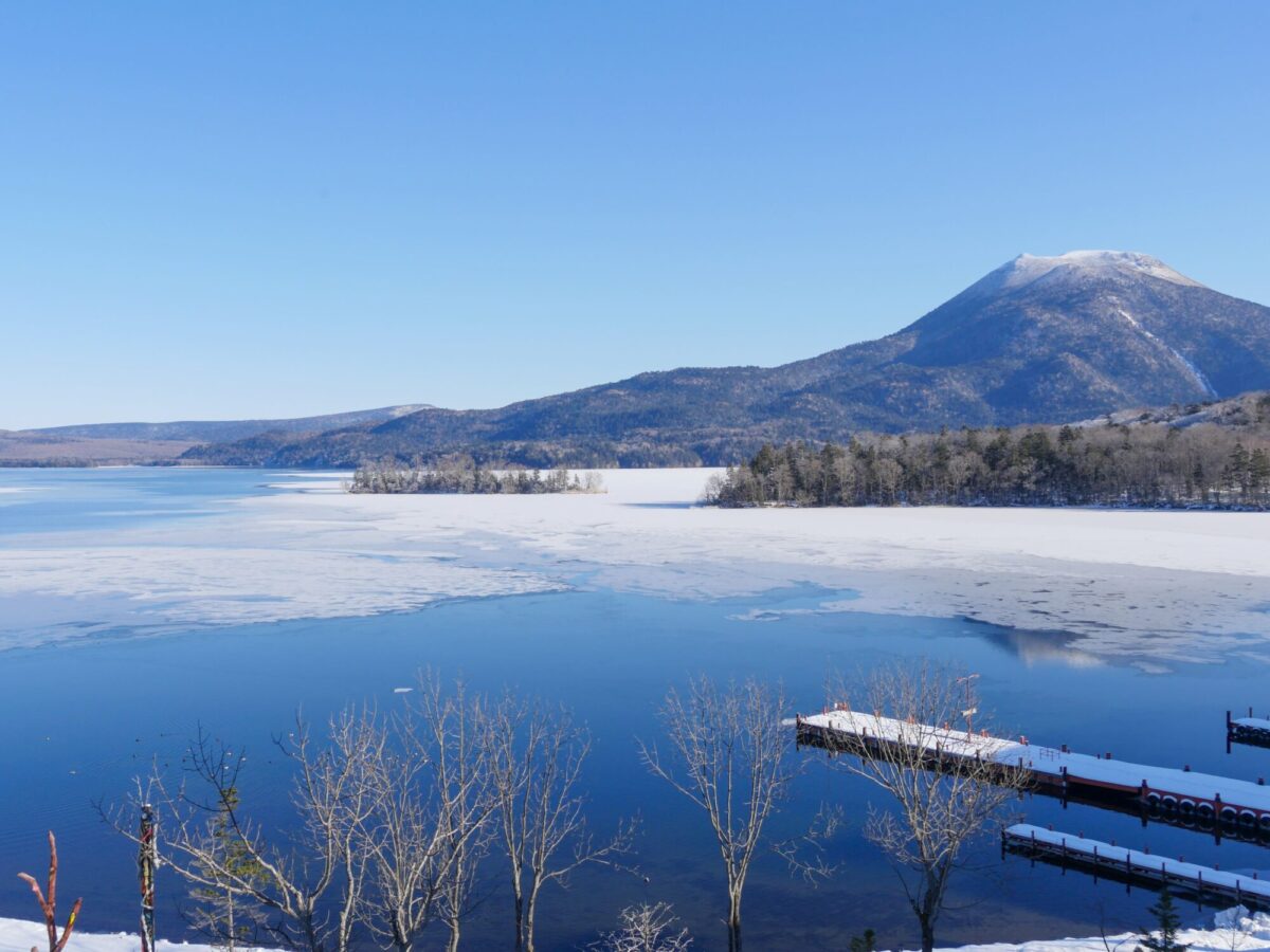 約15万年前の噴火で生まれたカルデラ湖。特別天然記念物マリモの生息地として世界的に有名で、直径30cmにもなる球状マリモは阿寒湖だけの貴重な自然遺産です。雌阿寒岳・雄阿寒岳を背景に、冬にはフロストフラワーの幻想的な光景が見られます。