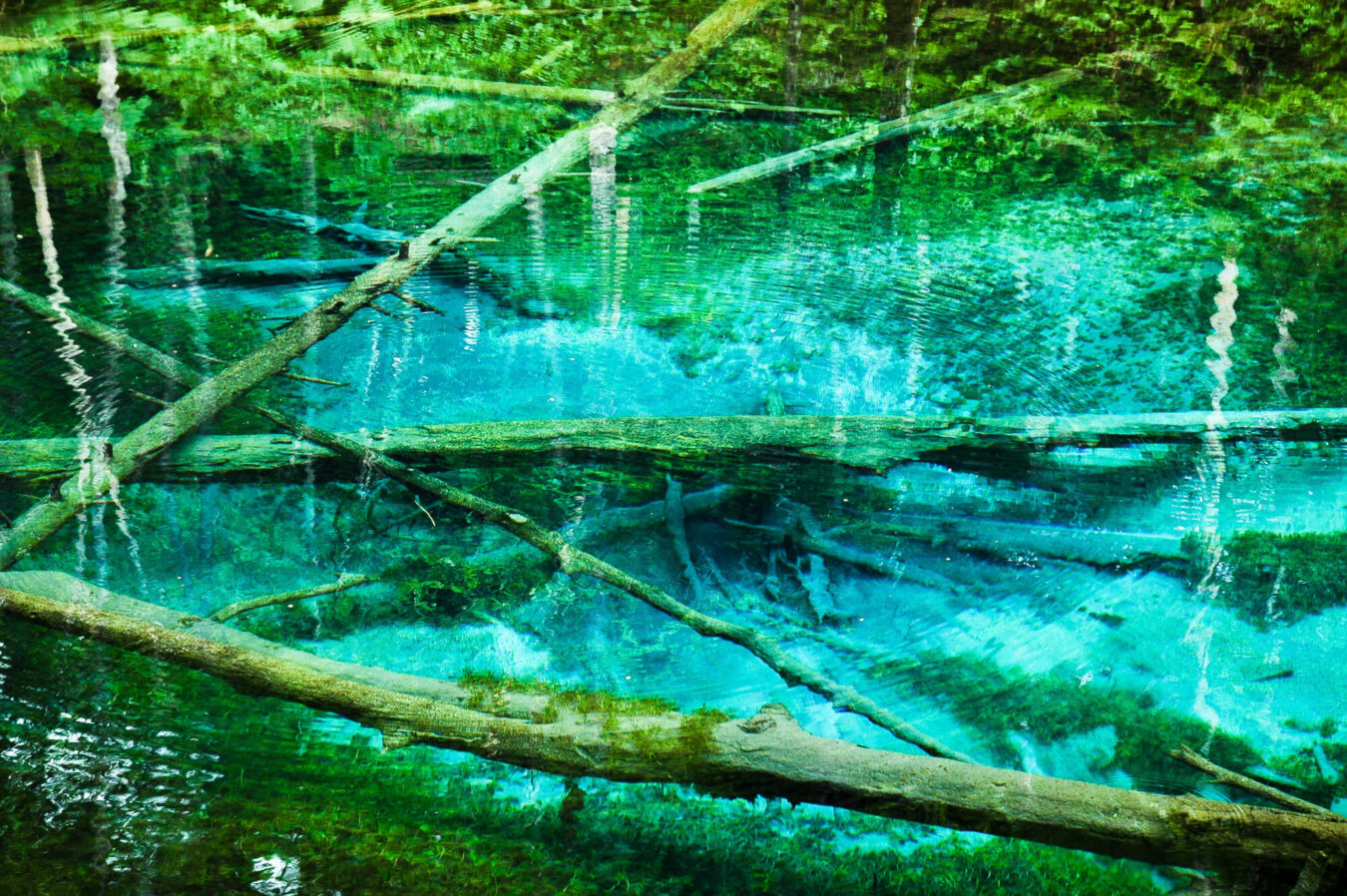 摩周湖の伏流水で形成された神秘的な池。青く澄んだ清水は透明度が高く、池底に沈む倒木や泳ぐオショロコマまで見渡せます。周囲の木々が生み出す幻想的な雰囲気は、訪れる人々を癒すパワースポット。阿寒摩周国立公園内に位置します。