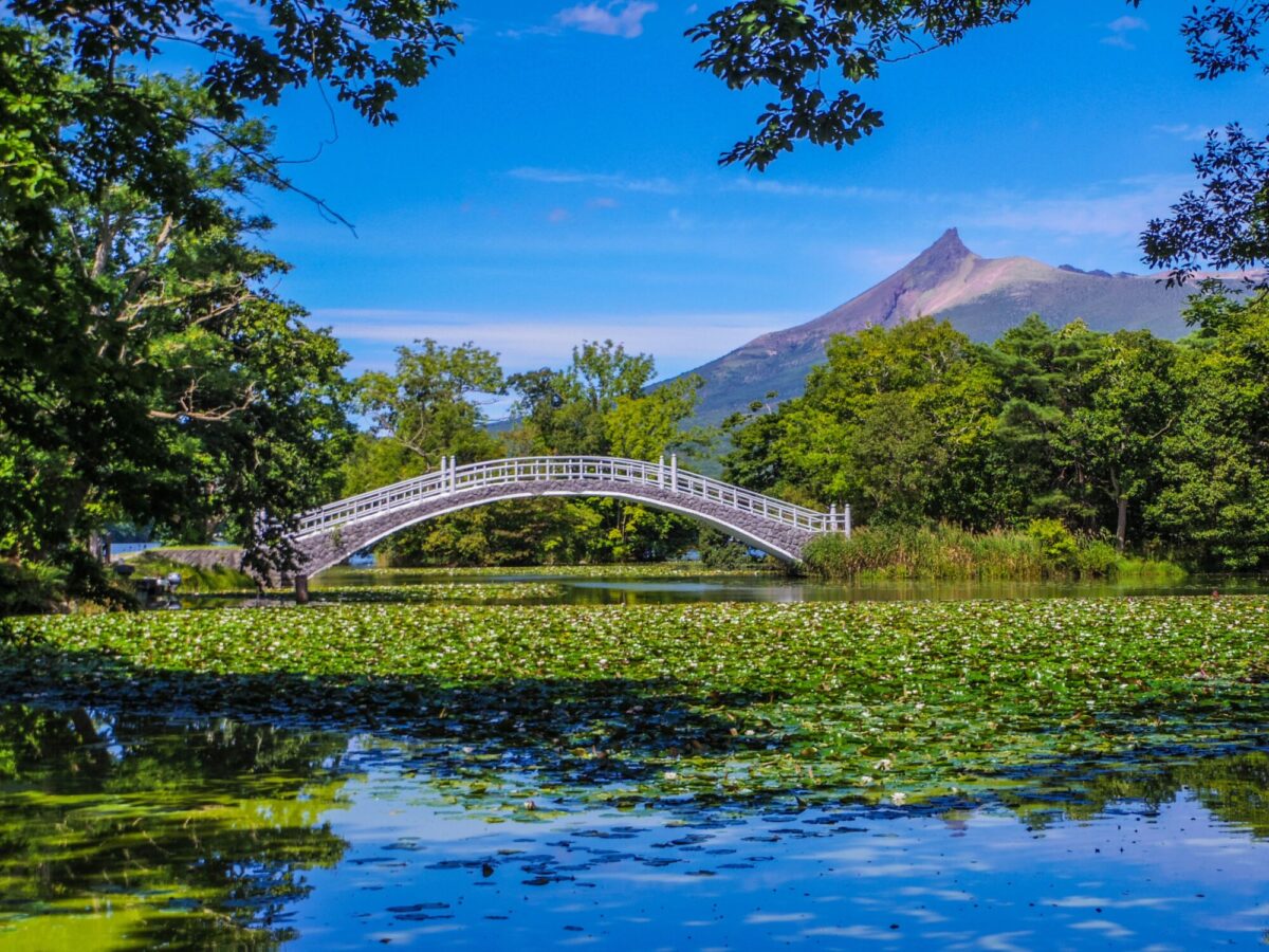 大沼、小沼、蓴菜沼に126の島々が浮かび、18の橋が架かる風光明媚な国定公園。新日本三景の一つに数えられ、背景には秀峰駒ヶ岳がそびえます。四季折々の自然美が楽しめ、サイクリングやボート遊びなどアクティビティも充実しています。