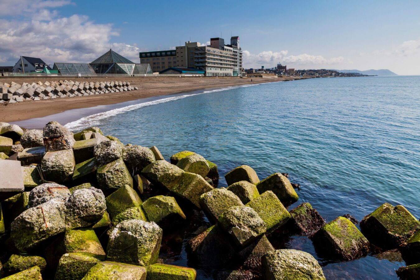 北海道本島最北端の地。北極星をモチーフにした「日本最北端の地の碑」が建ち、目の前には果てしなく広がる海と空の大パノラマが展開します。晴れた日にはサハリンも望め、どこまでも続く水平線は圧倒的な開放感。朝日から夕日まで絶景が楽しめます。