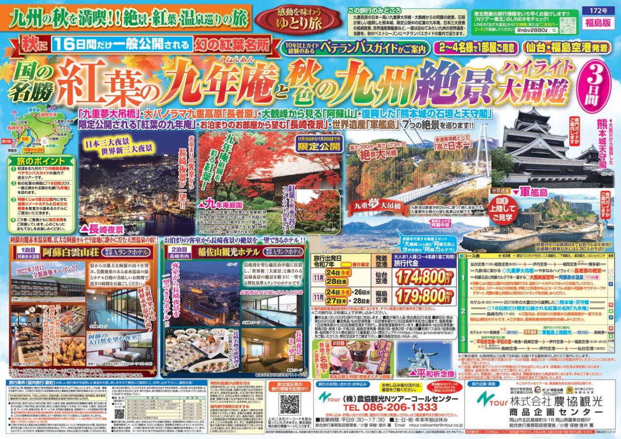 九州ツアーへの参加者に ≫乗継キャッシュバック5000円 と ≫福島空港商品券3000円 を進呈します。それぞれ申込ください。
