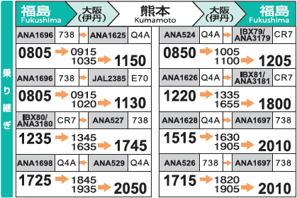 福島空港~熊本・大分空港のフライト