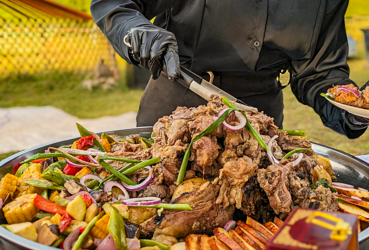 焼いた石の上で熱して調理した羊肉。ザ、遊牧民料理!羊の臭みは一切なく、付け合わせのお野菜もホクホク。