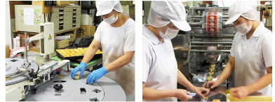 製造面ではオートメーション化に加え、人の目による細心のチェック体制で、衛生面はもちろん、安心、安全を徹底して行っています。